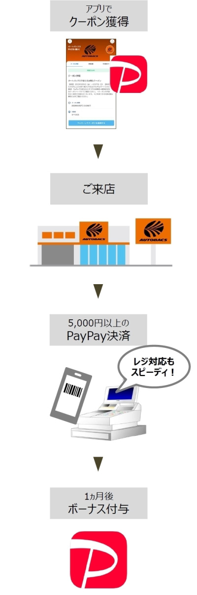 事前に上記の2次元コードをスキャン、またはPayPayアプリからオートバックスのクーポンを獲得して、オートバックスでのお支払い時にPayPayをご利用ください。